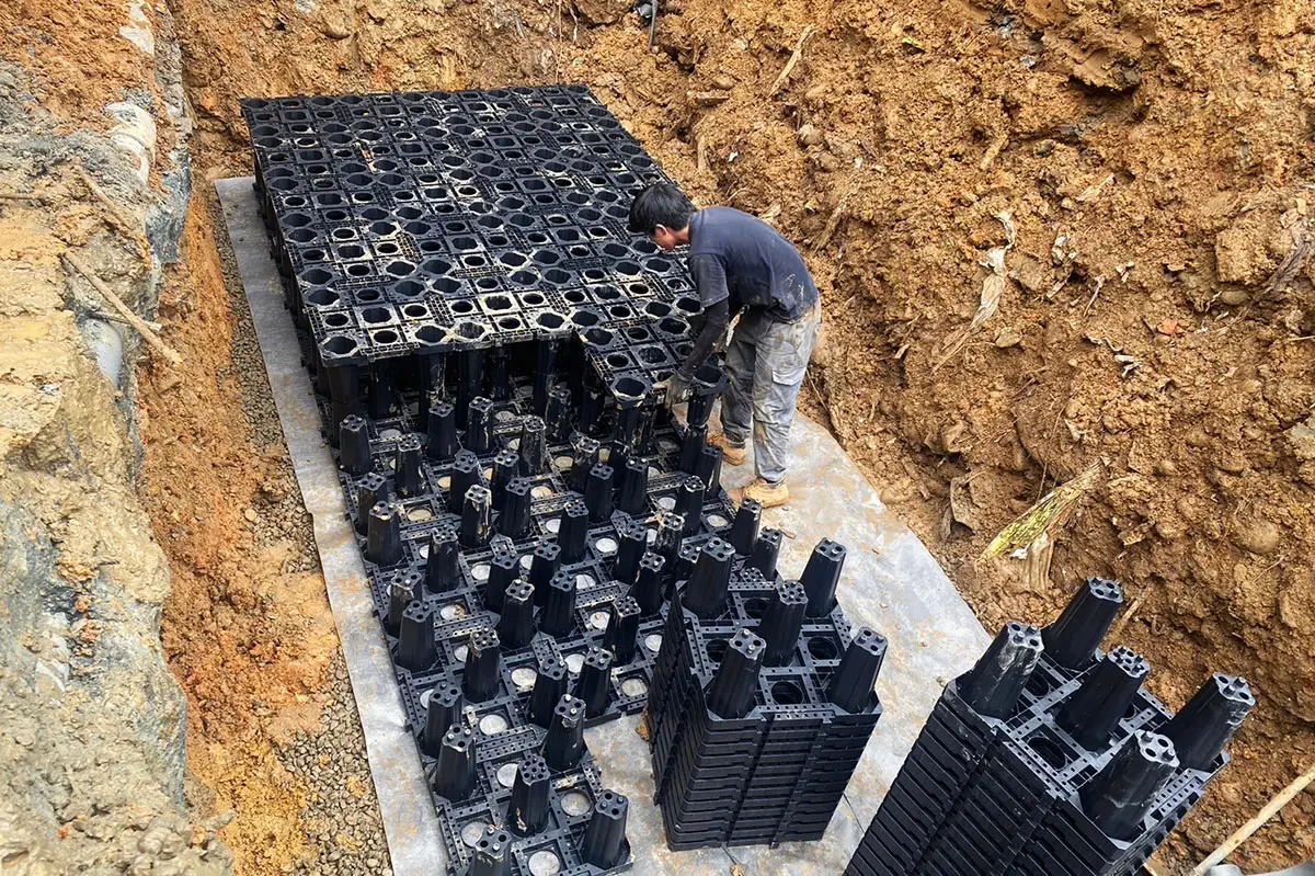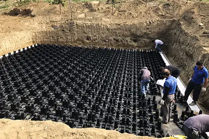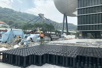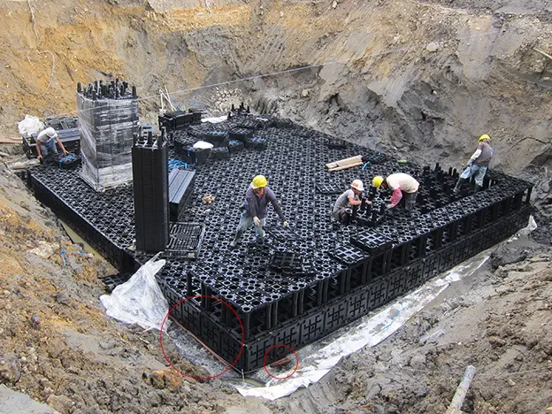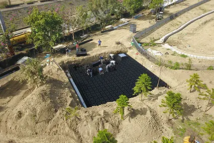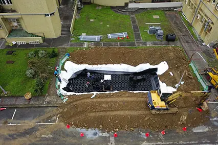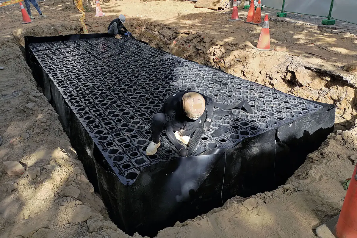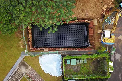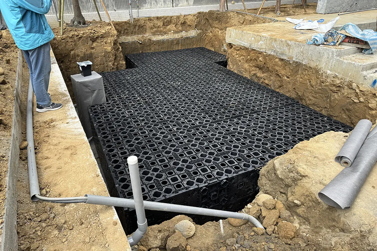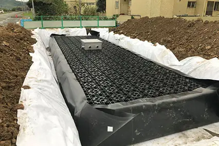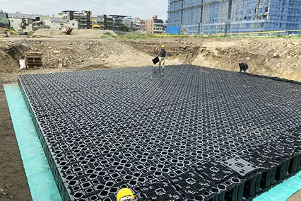 主要應用於地表面下的框架式雨水收集系統。