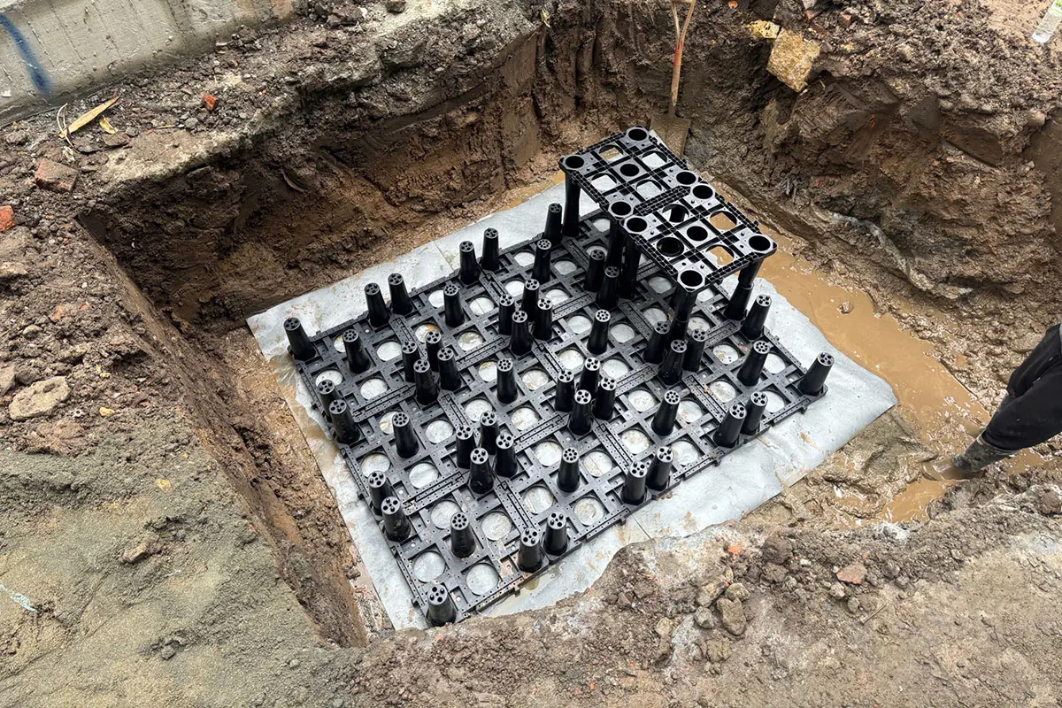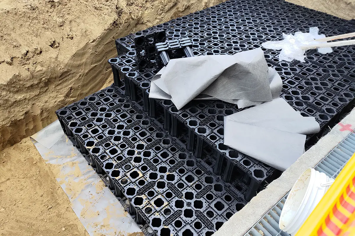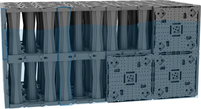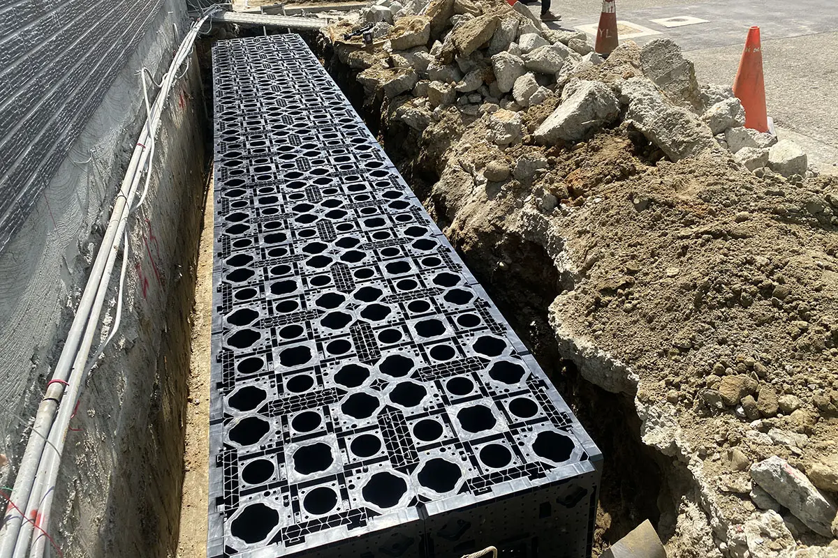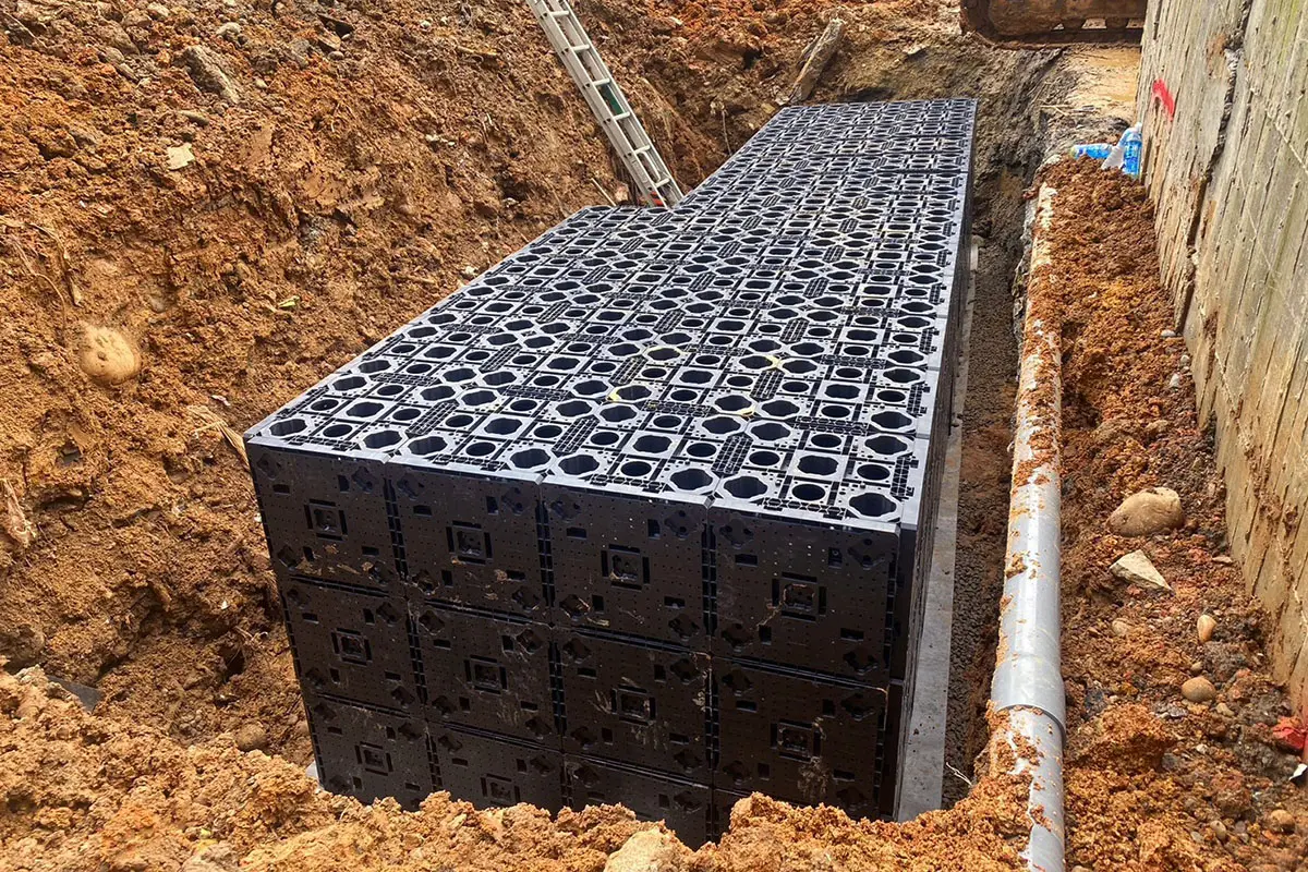 主要應用於地表面下的框架式雨水收集系統。