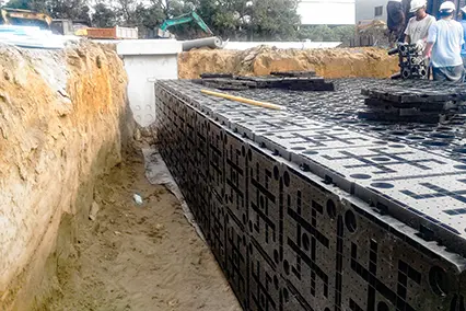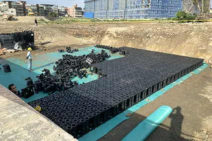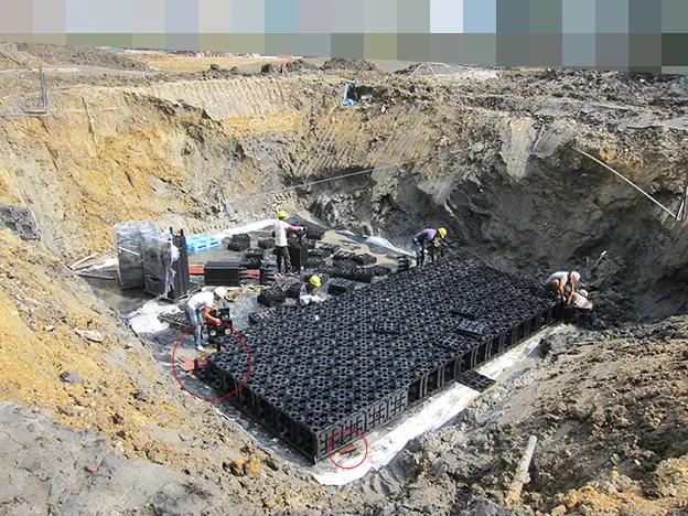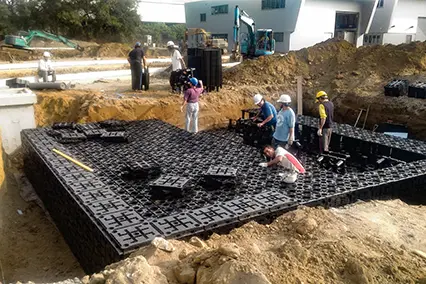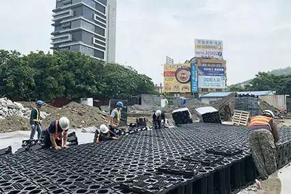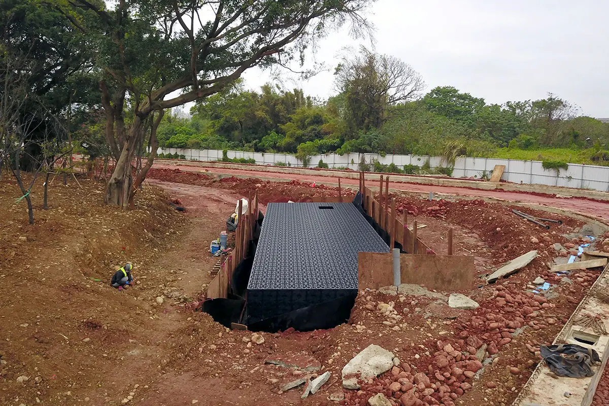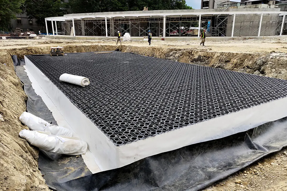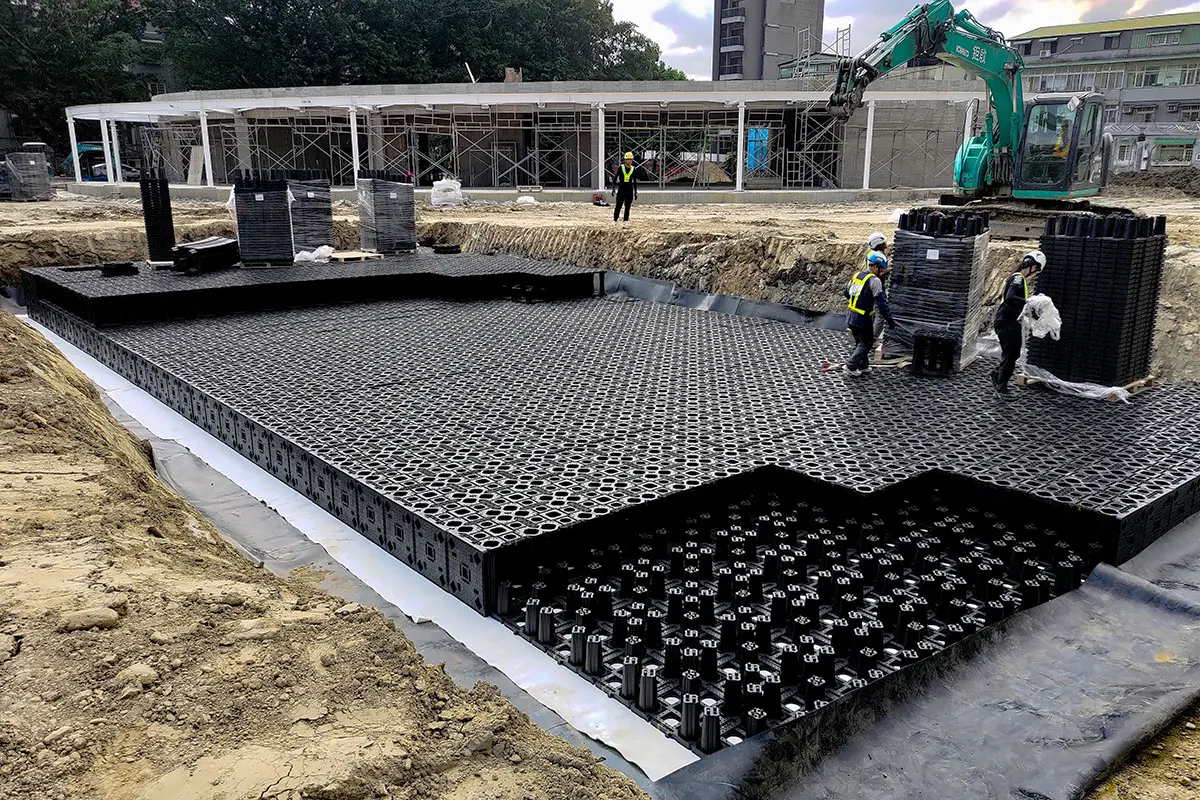 主要應用於地表面下的框架式雨水收集系統。