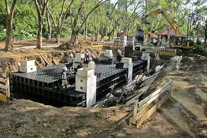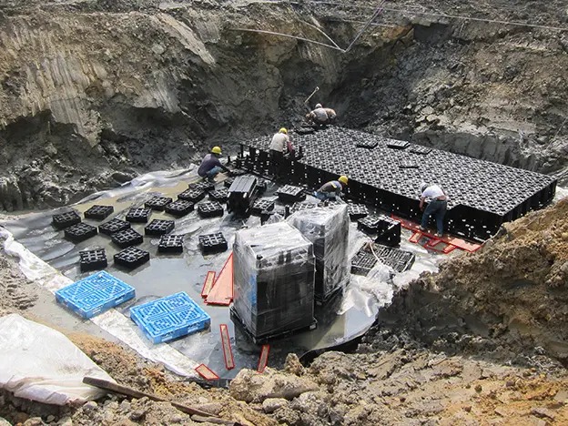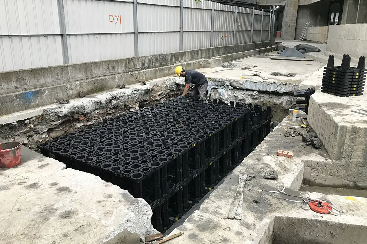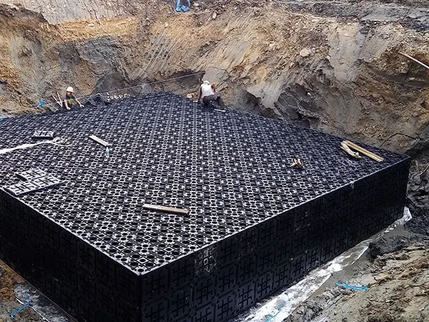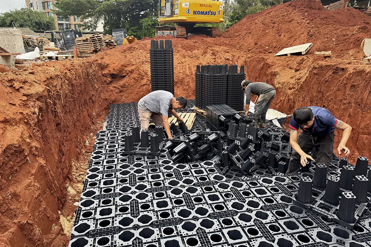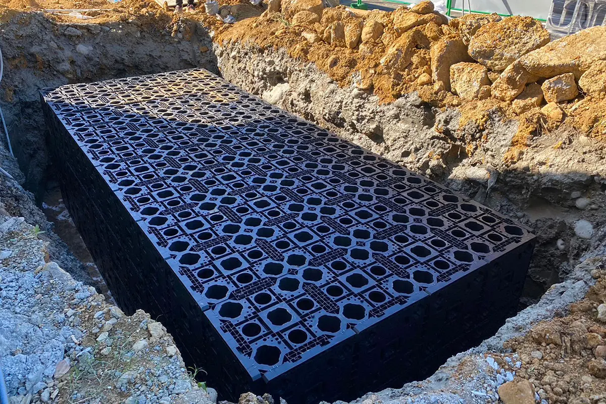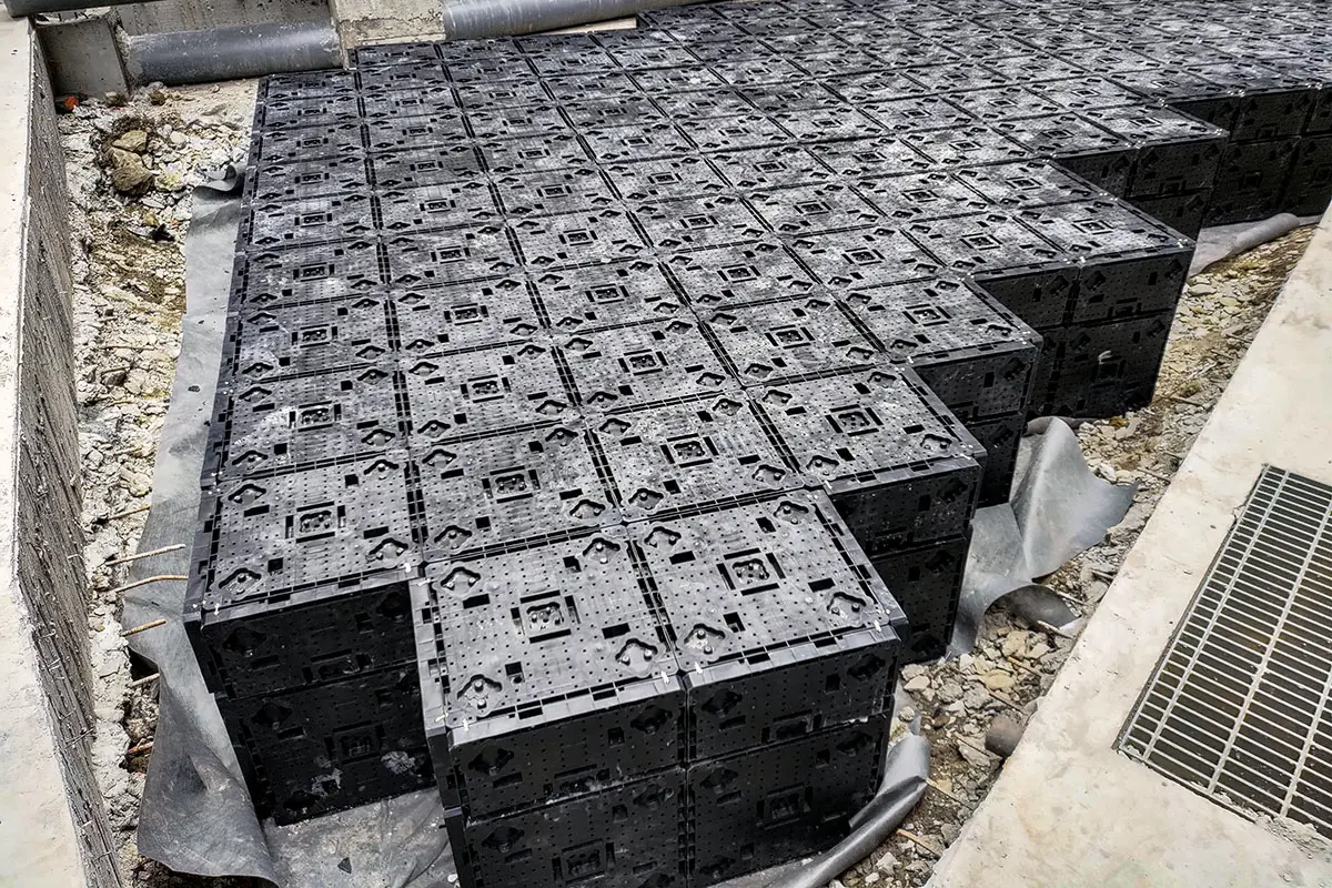 主要應用於地表面下的框架式雨水收集系統。